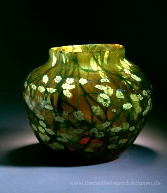 Wir bieten Ihnen eine handgefertigte Reproduktion auf Leinwand des berühmten Kunstwerks 'Vase' von Louis Comfort Tiffany, aus dem Reproduktionsmuseum.