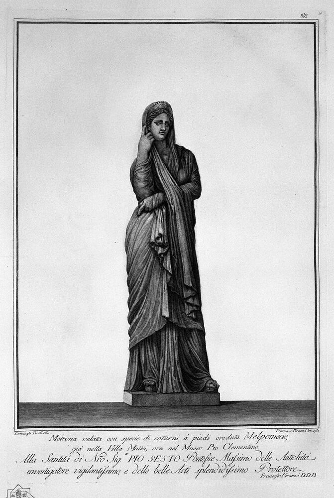 Wir bieten Ihnen eine handgefertigte Reproduktion auf Leinwand des berühmten Kunstwerks 'Veiled Matrone' von Giovanni Battista Piranesi, aus dem Reproduktionsmuseum.
