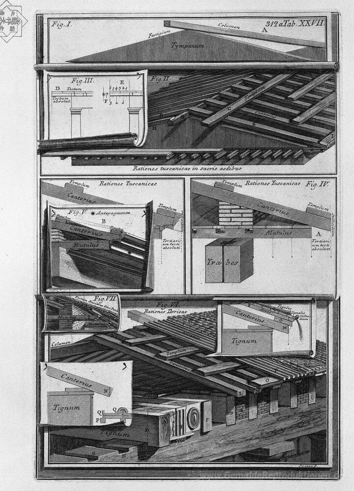 Wir bieten Ihnen eine handgefertigte Reproduktion auf Leinwand des berühmten Kunstwerks 'Vergleiche von Strukturdetails (Balken)' von Giovanni Battista Piranesi, aus dem Reproduktionsmuseum.