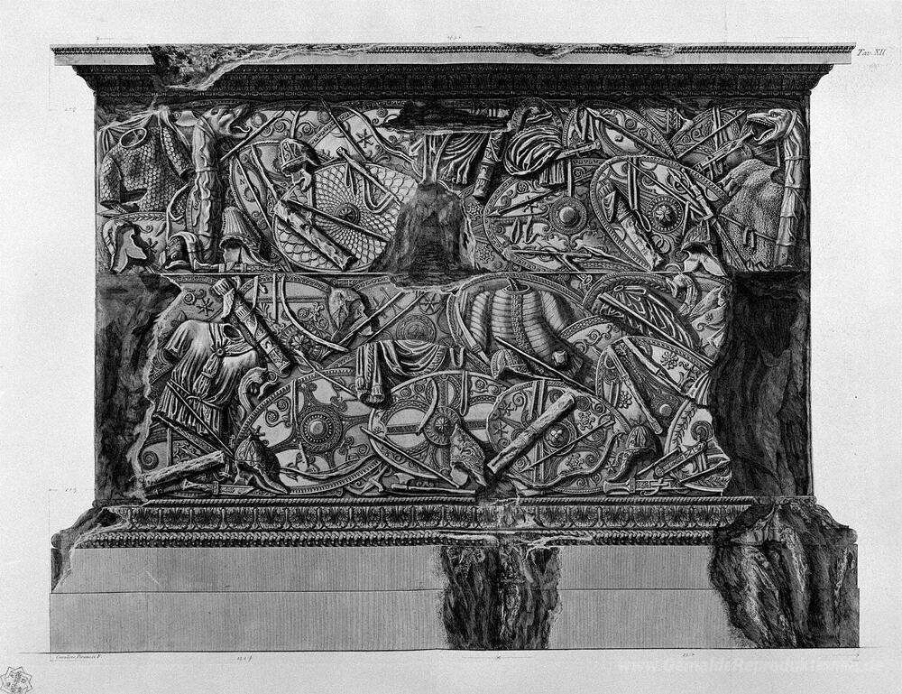 Wir bieten Ihnen eine handgefertigte Reproduktion auf Leinwand des berühmten Kunstwerks 'Vierte Seite des Sockels derselben Spalte' von Giovanni Battista Piranesi, aus dem Reproduktionsmuseum.