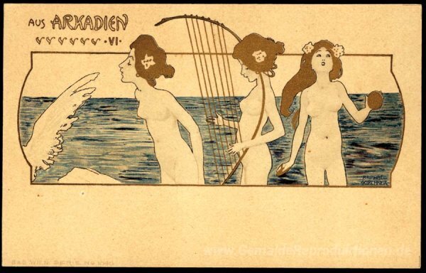 Wir bieten Ihnen eine handgefertigte Reproduktion auf Leinwand des berühmten Kunstwerks 'Vom Arcadia' von Raphael Kirchner, aus dem Reproduktionsmuseum.
