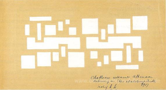 Wir bieten Ihnen eine handgefertigte Reproduktion auf Leinwand des berühmten Kunstwerks 'Vorlage für das Long House Ornament Rand' von Theo van Doesburg, aus dem Reproduktionsmuseum.