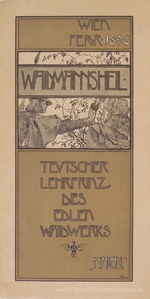 Wir bieten Ihnen eine handgefertigte Reproduktion auf Leinwand des berühmten Kunstwerks 'Waidmannsheil' von Koloman Moser, aus dem Reproduktionsmuseum.