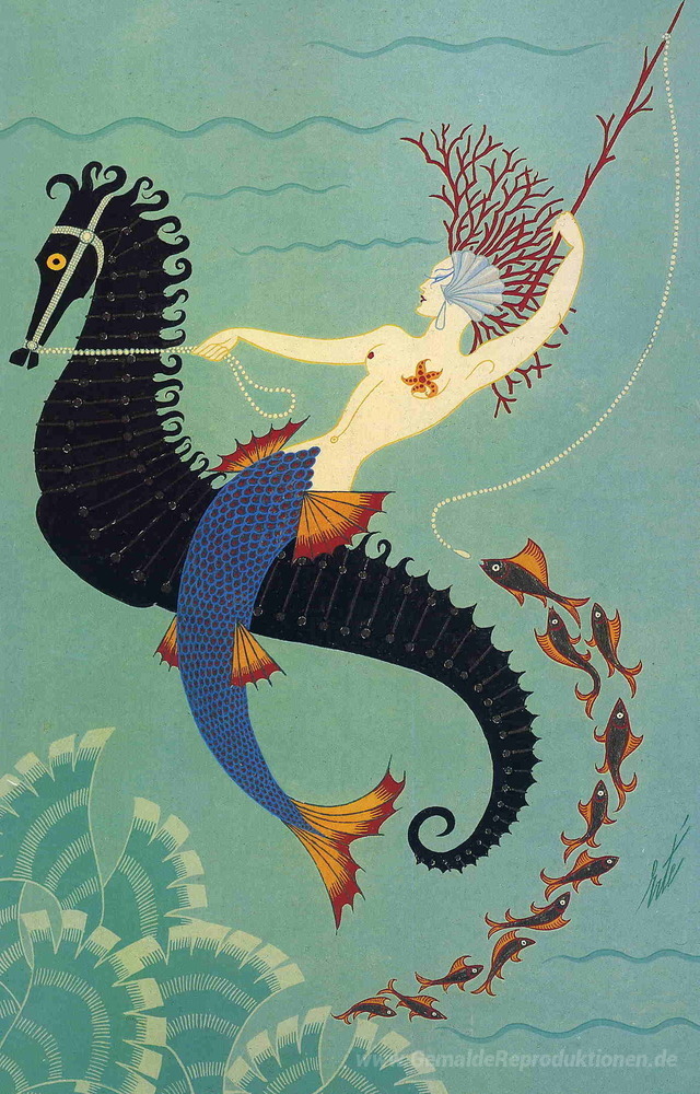 Wir bieten Ihnen eine handgefertigte Reproduktion auf Leinwand des berühmten Kunstwerks 'Wasser' von Erte, aus dem Reproduktionsmuseum.