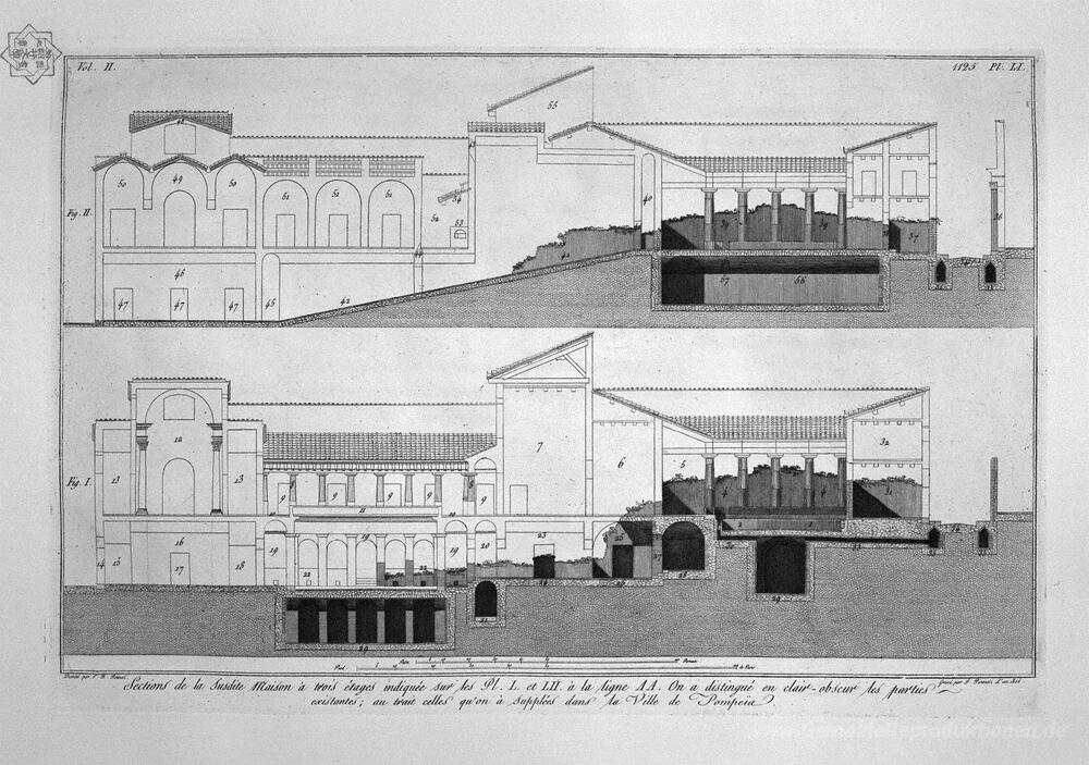 Wir bieten Ihnen eine handgefertigte Reproduktion auf Leinwand des berühmten Kunstwerks 'Zweite Grundriss des dreistöckigen Haus' von Giovanni Battista Piranesi, aus dem Reproduktionsmuseum.