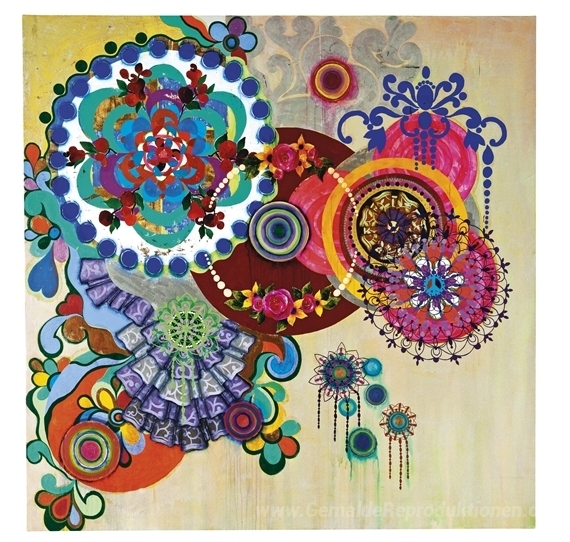 Wir bieten Ihnen eine handgefertigte Reproduktion auf Leinwand des berühmten Kunstwerks 'Dança Dos Reis' von Beatriz Milhazes, aus dem Reproduktionsmuseum.
