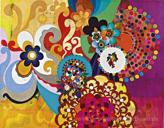 Wir bieten Ihnen eine handgefertigte Reproduktion auf Leinwand des berühmten Kunstwerks 'Meu Limão' von Beatriz Milhazes, aus dem Reproduktionsmuseum.
