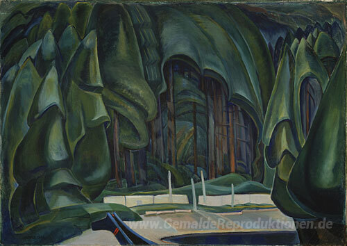 Wir bieten Ihnen eine handgefertigte Reproduktion auf Leinwand des berühmten Kunstwerks 'Old Time Coast Village' von Emily Carr, aus dem Reproduktionsmuseum.