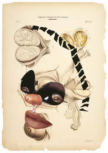 Wir bieten Ihnen eine handgefertigte Reproduktion auf Leinwand des berühmten Kunstwerks 'Myomen der Gebärmutter' von Wangechi Mutu, aus dem Reproduktionsmuseum.