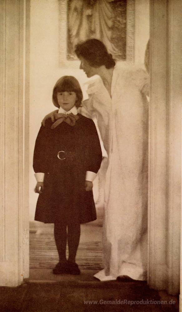Wir bieten Ihnen eine handgefertigte Reproduktion auf Leinwand des berühmten Kunstwerks 'Du bist gebenedeit unter Frauen' von Gertrude Kasebier, aus dem Reproduktionsmuseum.