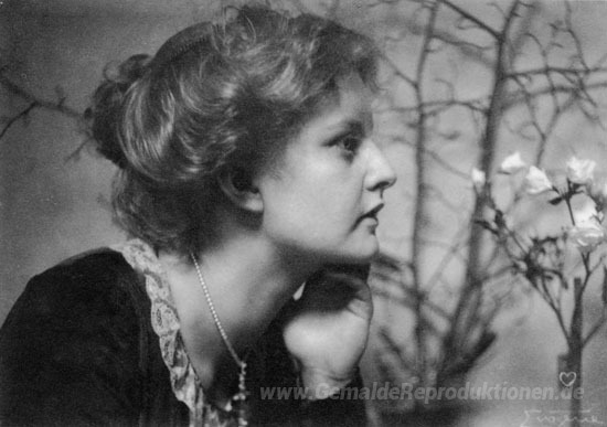 Wir bieten Ihnen eine handgefertigte Reproduktion auf Leinwand des berühmten Kunstwerks 'Frau mit Blumen' von Frank Eugene, aus dem Reproduktionsmuseum.