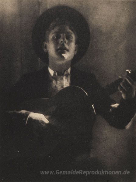 Wir bieten Ihnen eine handgefertigte Reproduktion auf Leinwand des berühmten Kunstwerks 'Gitarren-Spieler von Sevilla' von Adolph de Meyer, aus dem Reproduktionsmuseum.