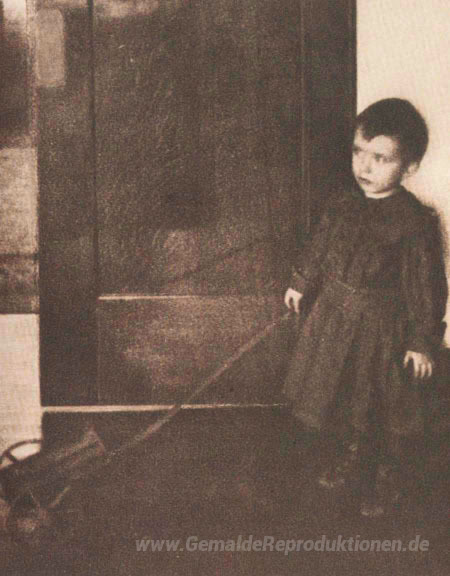 Wir bieten Ihnen eine handgefertigte Reproduktion auf Leinwand des berühmten Kunstwerks 'Junge mit Wagon' von Clarence White, aus dem Reproduktionsmuseum.