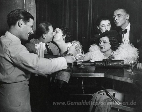 Wir bieten Ihnen eine handgefertigte Reproduktion auf Leinwand des berühmten Kunstwerks 'Kiki dans un bar, Montparnasse' von Brassai, aus dem Reproduktionsmuseum.