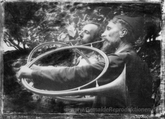 Wir bieten Ihnen eine handgefertigte Reproduktion auf Leinwand des berühmten Kunstwerks 'Männer mit Hörnern' von Frank Eugene, aus dem Reproduktionsmuseum.