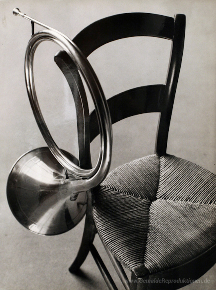 Wir bieten Ihnen eine handgefertigte Reproduktion auf Leinwand des berühmten Kunstwerks 'Stuhl mit Französisch Horn' von Andre Kertesz, aus dem Reproduktionsmuseum.