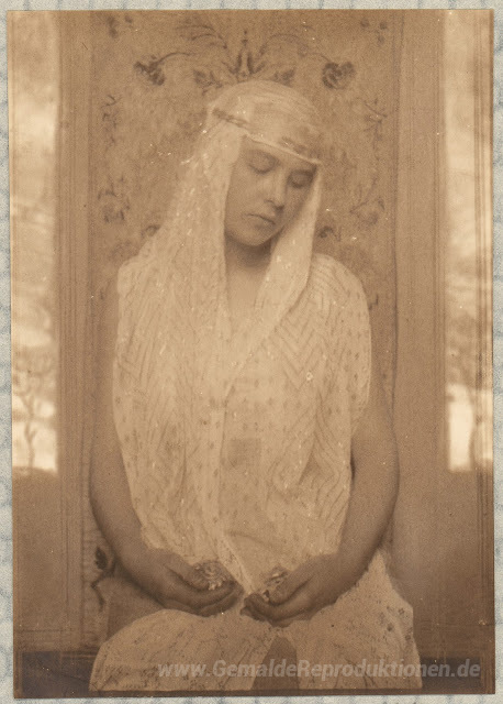 Wir bieten Ihnen eine handgefertigte Reproduktion auf Leinwand des berühmten Kunstwerks 'The Oriental Braut' von Frank Eugene, aus dem Reproduktionsmuseum.