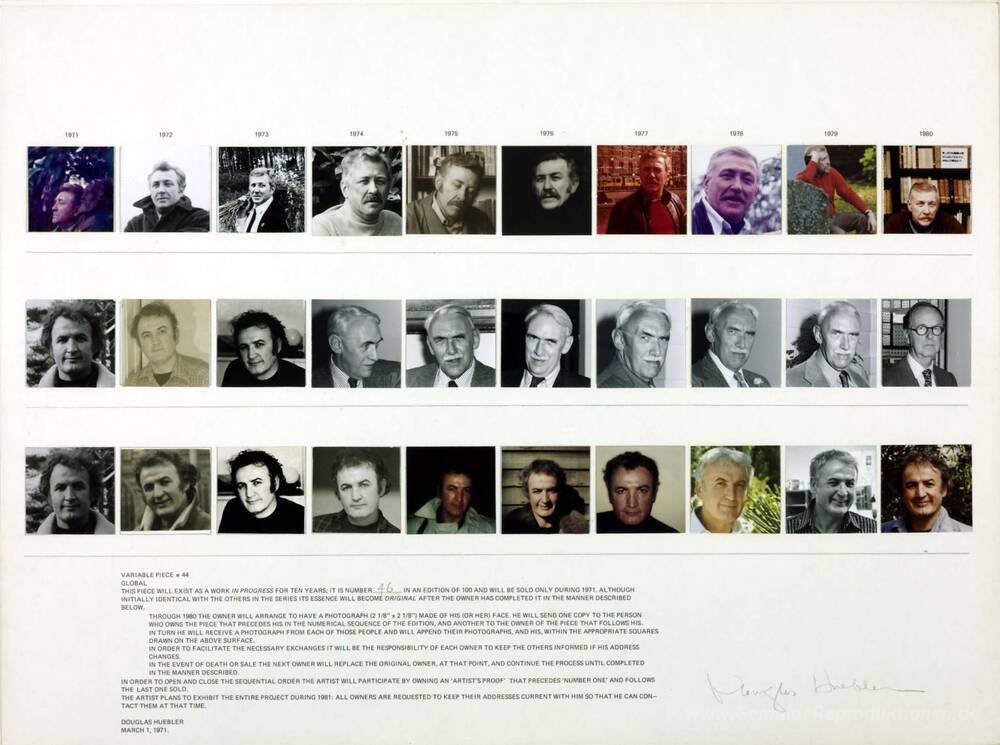 Wir bieten Ihnen eine handgefertigte Reproduktion auf Leinwand des berühmten Kunstwerks 'Variable Piece No. 44' von Douglas Huebler, aus dem Reproduktionsmuseum.