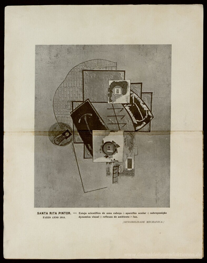Wir bieten Ihnen eine handgefertigte Reproduktion auf Leinwand des berühmten Kunstwerks 'Estojo scientifico de uma cabeça + Aparelho Augen + sobreposição' von Guilherme de Santa-Rita, aus dem Reproduktionsmuseum.