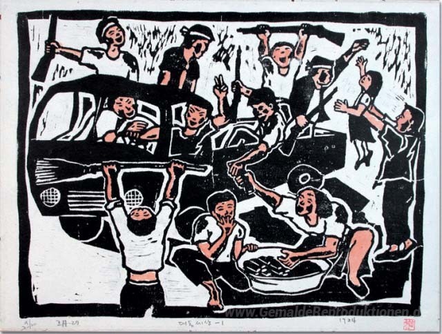 Wir bieten Ihnen eine handgefertigte Reproduktion auf Leinwand des berühmten Kunstwerks '27. Mai-Daedong Sesang' von Hong Song-dam, aus dem Reproduktionsmuseum.