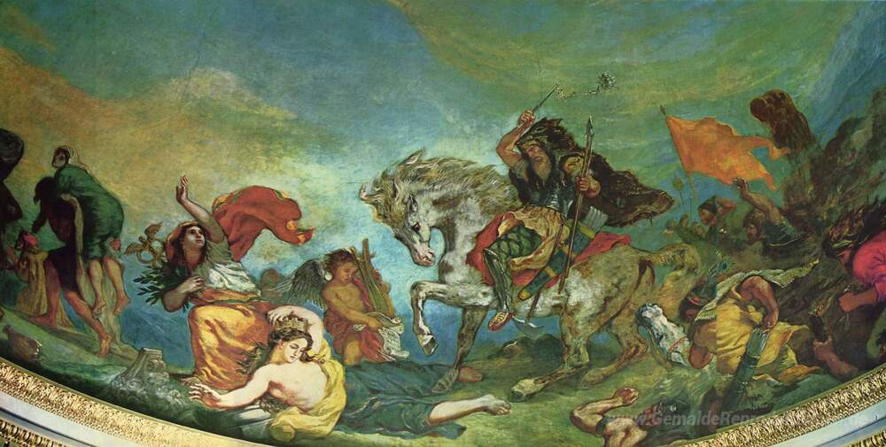 Wir bieten Ihnen eine handgefertigte Reproduktion auf Leinwand des berühmten Kunstwerks 'Attila und seine Horden Überschuss Italien und die Kunst' von Eugene Delacroix, aus dem Reproduktionsmuseum.