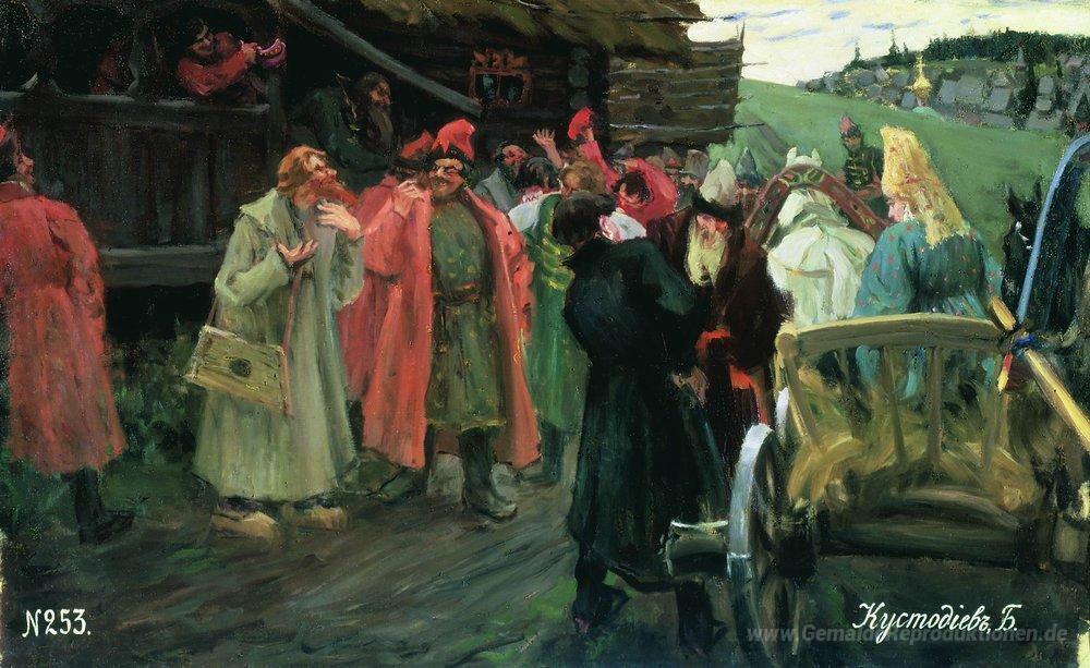 Willkommen in der faszinierenden Welt der Ölgemälde, einer Kunstform, die Emotionen, Geschichten und die Essenz des Lebens einfängt. In diesem besonderen Abschnitt präsentieren wir Ihnen das bemerkenswerte Werk Bei wiegt Bogenschützen zu Fuß von dem renommierten Künstler Boris Kustodiev. Kustodiev, bekannt für seine lebendigen Farben und dynamischen Kompositionen, schafft es, mit seinen Bildern eine Verbindung zwischen dem Betrachter und der dargestellten Szene herzustellen.