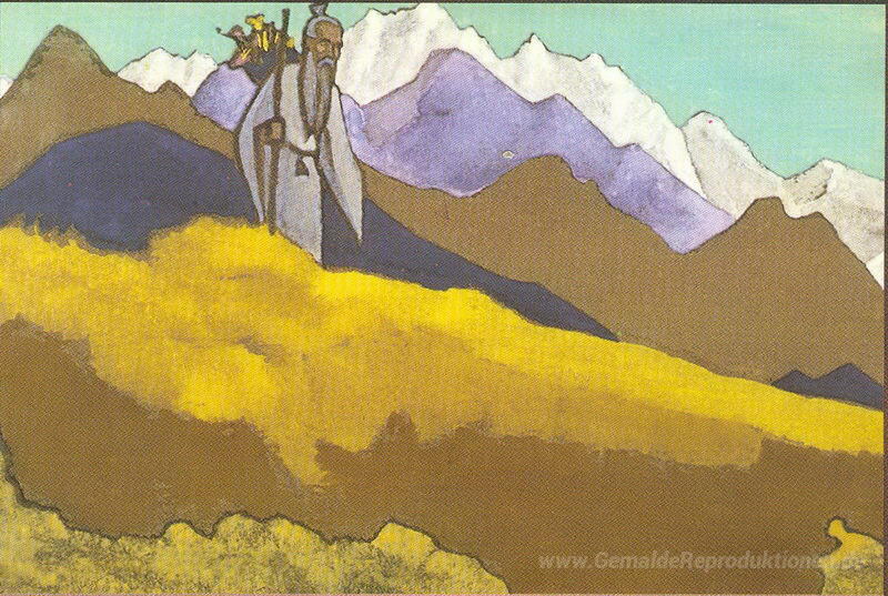 Wir bieten Ihnen eine handgefertigte Reproduktion auf Leinwand des berühmten Kunstwerks 'Charaka' von Nicholas Roerich, aus dem Reproduktionsmuseum.
