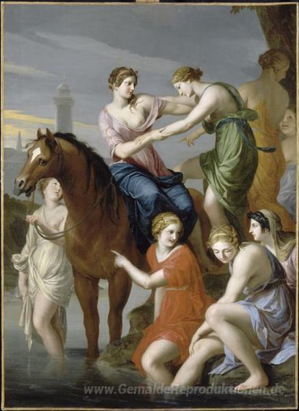 Wir bieten Ihnen eine handgefertigte Reproduktion auf Leinwand des berühmten Kunstwerks 'Clelia Querung des Tiber' von Jacques Stella, aus dem Reproduktionsmuseum.