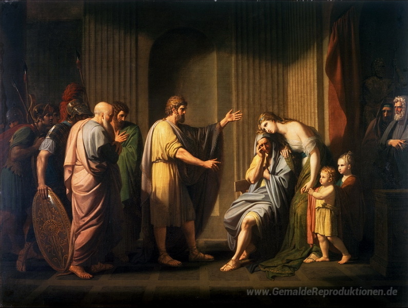 Wir bieten Ihnen eine handgefertigte Reproduktion auf Leinwand des berühmten Kunstwerks 'Cleombrotus durch Leonidas II, König von Sparta in die Verbannun' von Benjamin West, aus dem Reproduktionsmuseum.