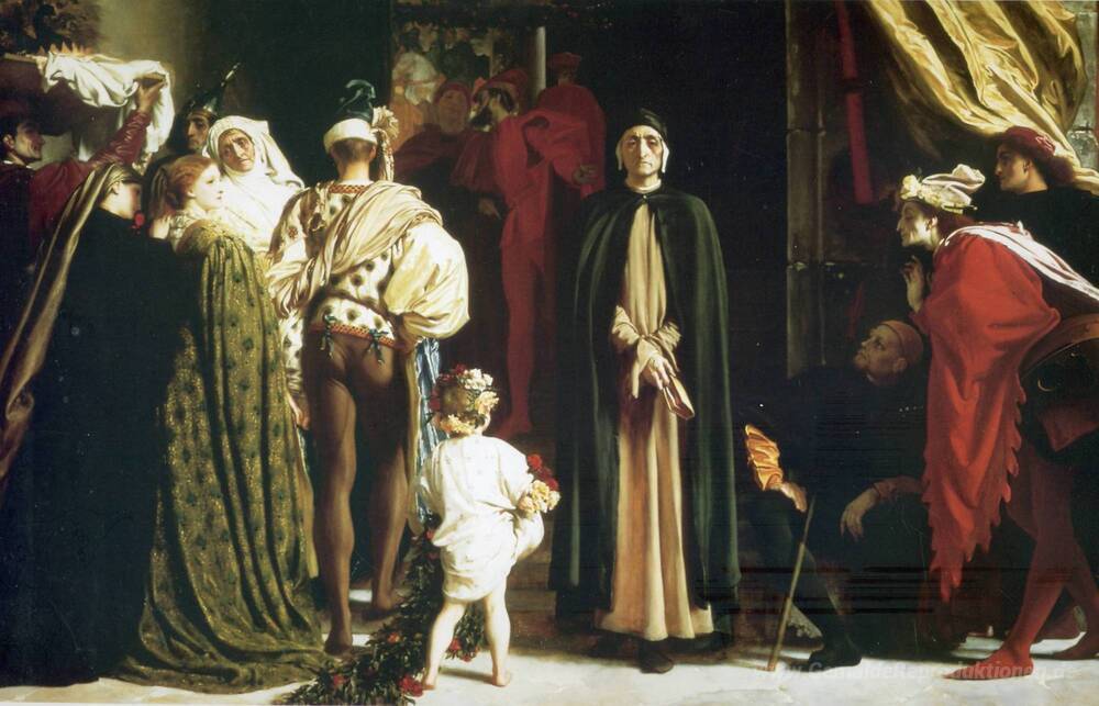Wir bieten Ihnen eine handgefertigte Reproduktion auf Leinwand des berühmten Kunstwerks 'Dante in Exile' von Frederic Leighton, aus dem Reproduktionsmuseum.