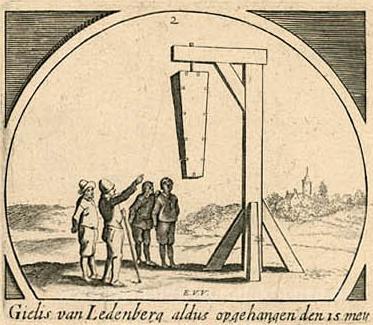 Wir bieten Ihnen eine handgefertigte Reproduktion auf Leinwand des berühmten Kunstwerks 'Das Aufhängen von Gilles van Ledenberg' von Esaias van de Velde, aus dem Reproduktionsmuseum.