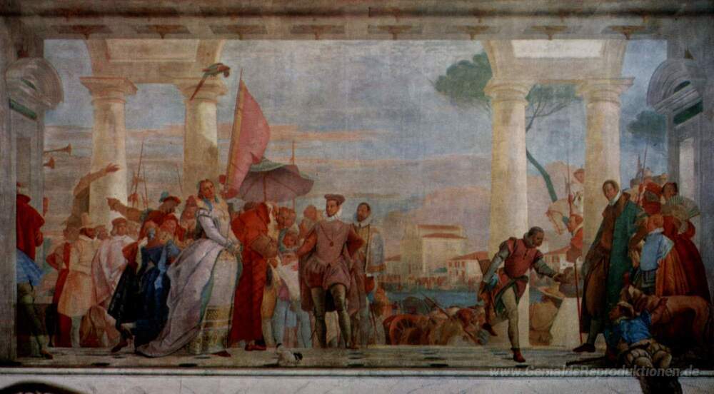 Wir bieten Ihnen eine handgefertigte Reproduktion auf Leinwand des berühmten Kunstwerks 'Der Empfang von Heinrich III' von Giovanni Battista Tiepolo, aus dem Reproduktionsmuseum.