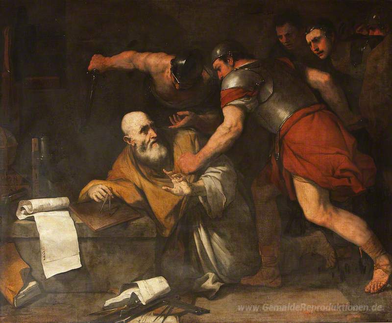 Wir bieten Ihnen eine handgefertigte Reproduktion auf Leinwand des berühmten Kunstwerks 'Der Tod des Archimedes' von Luca Giordano, aus dem Reproduktionsmuseum.