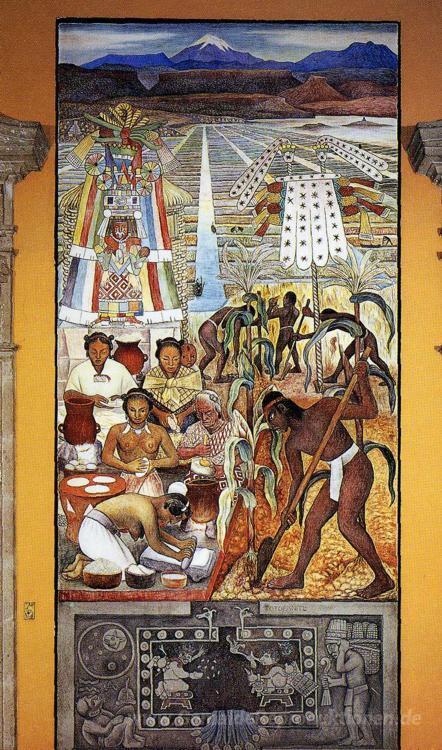 Wir bieten Ihnen eine handgefertigte Reproduktion auf Leinwand des berühmten Kunstwerks 'Die Huastec Civilisation' von Diego Rivera, aus dem Reproduktionsmuseum.