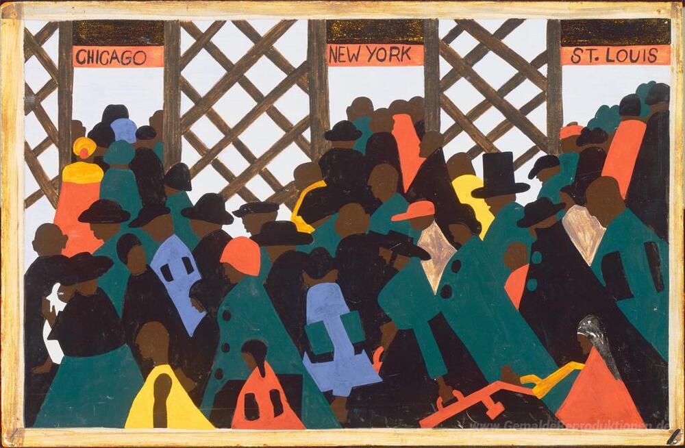 Willkommen in der faszinierenden Welt der Ölgemälde, wo jede Leinwand eine Geschichte erzählt und ein emotionales Erlebnis geschaffen wird. Eines der herausragendsten Werke ist Die Migration des Negro, Panel 1 von Jacob Lawrence, das die bedeutende Bewegung afroamerikanischer Gemeinschaften während der großen Migration eindrucksvoll darstellt. Lawrence, ein Meister des narrativen Realismus, verwendet kräftige Farben und dynamische Formen, um das Gefühl von Hoffnung und Entbehrung auf kraftvolle Weise zu vermitteln.
