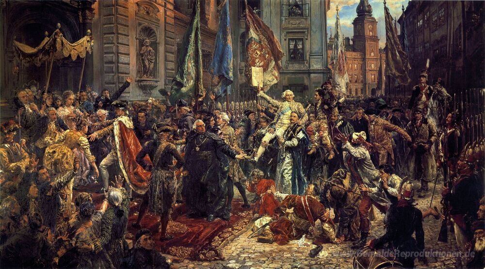 Wir bieten Ihnen eine handgefertigte Reproduktion auf Leinwand des berühmten Kunstwerks 'Die Verfassung des 3. Mai 1791' von Jan Matejko, aus dem Reproduktionsmuseum.