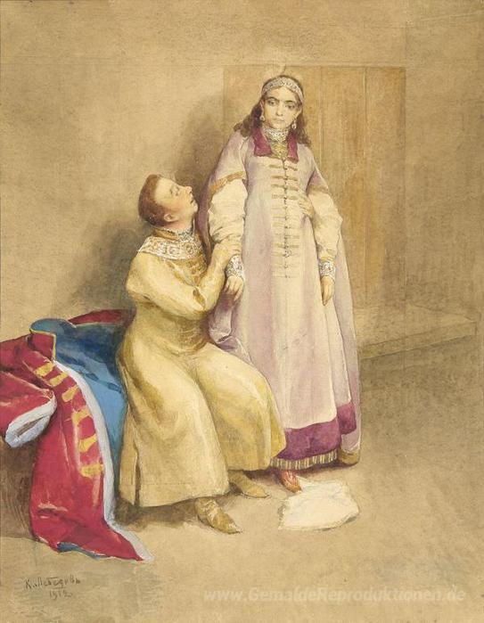 Wir bieten Ihnen eine handgefertigte Reproduktion auf Leinwand des berühmten Kunstwerks 'Falsch Dmitry I und Prinzessin Xenia Godunowa' von Klavdy Lebedev, aus dem Reproduktionsmuseum.