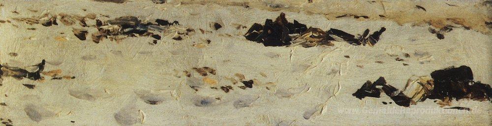 Wir bieten Ihnen eine handgefertigte Reproduktion auf Leinwand des berühmten Kunstwerks 'Gefrorene Leichen von türkischen Soldaten' von Vasily Vereshchagin, aus dem Reproduktionsmuseum.