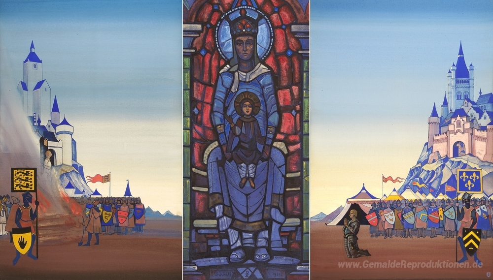 Wir bieten Ihnen eine handgefertigte Reproduktion auf Leinwand des berühmten Kunstwerks 'Jeanne d'Arc' von Nicholas Roerich, aus dem Reproduktionsmuseum.