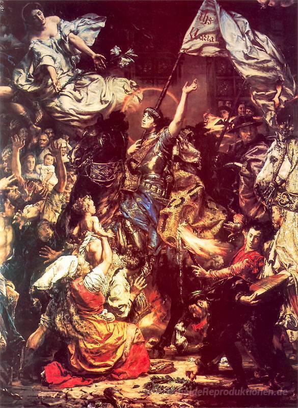 Wir bieten Ihnen eine handgefertigte Reproduktion auf Leinwand des berühmten Kunstwerks 'Jungfrau von Orleans' von Jan Matejko, aus dem Reproduktionsmuseum.