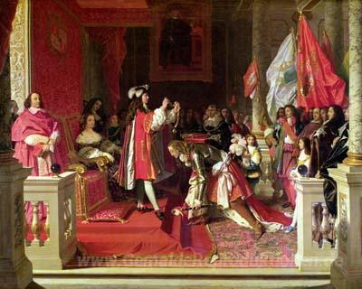 Wir bieten Ihnen eine handgefertigte Reproduktion auf Leinwand des berühmten Kunstwerks 'König Philipp V. von Spanien machen Marshal James Fitzjames' von Jean Auguste Dominique Ingres, aus dem Reproduktionsmuseum.