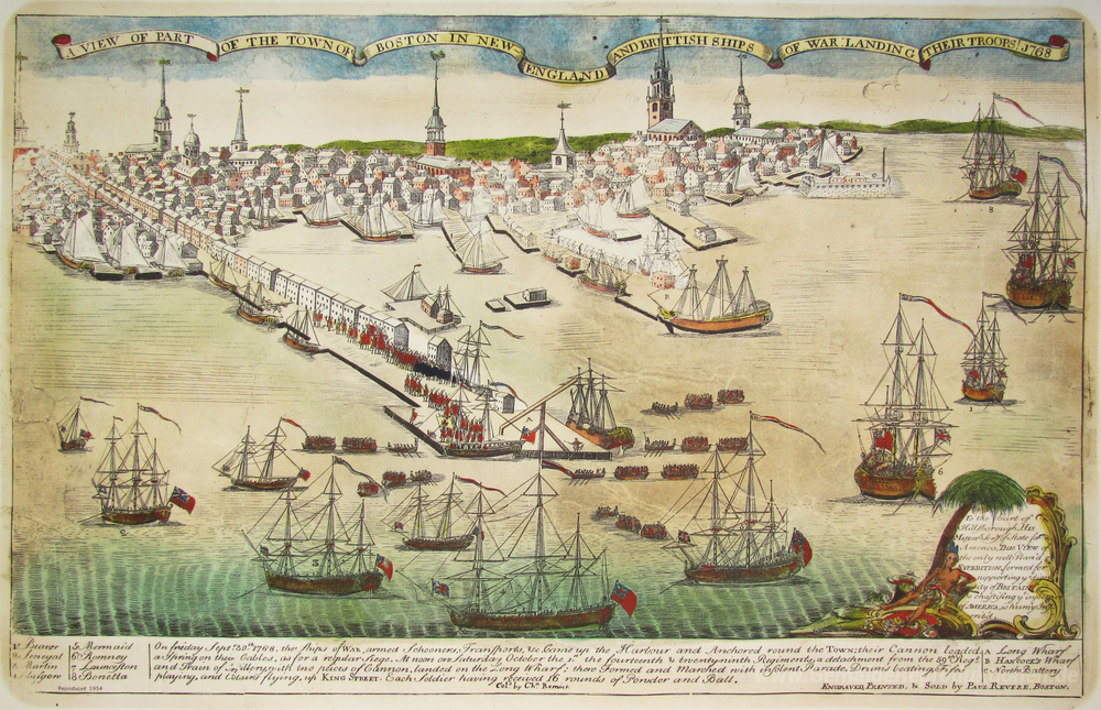 Wir bieten Ihnen eine handgefertigte Reproduktion auf Leinwand des berühmten Kunstwerks 'Landung von Truppen' von Paul Revere, aus dem Reproduktionsmuseum.