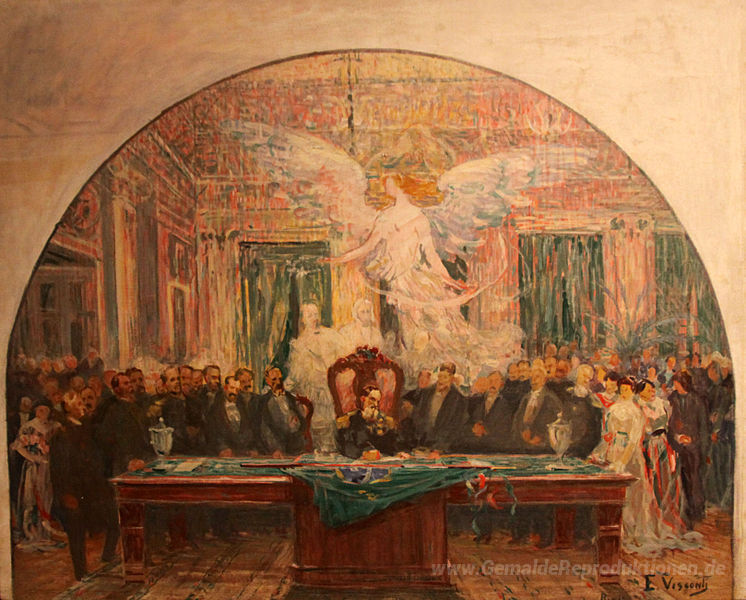 Wir bieten Ihnen eine handgefertigte Reproduktion auf Leinwand des berühmten Kunstwerks 'Lateinamerikanischen Presidental Amtseinführung, Brasilien, 1891' von Eliseu Visconti, aus dem Reproduktionsmuseum.