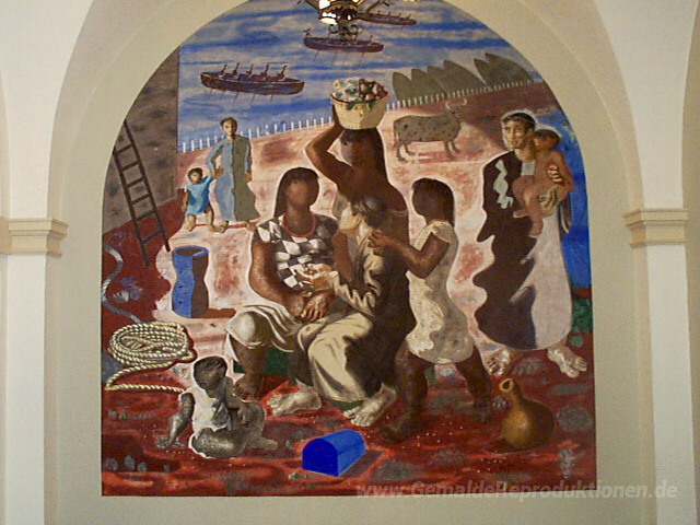 Wir bieten Ihnen eine handgefertigte Reproduktion auf Leinwand des berühmten Kunstwerks 'Lehre der Indianer' von Candido Portinari, aus dem Reproduktionsmuseum.