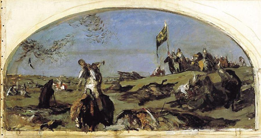 Wir bieten Ihnen eine handgefertigte Reproduktion auf Leinwand des berühmten Kunstwerks 'Nach der Schlacht von Kulikovo' von Valentin Serov, aus dem Reproduktionsmuseum.
