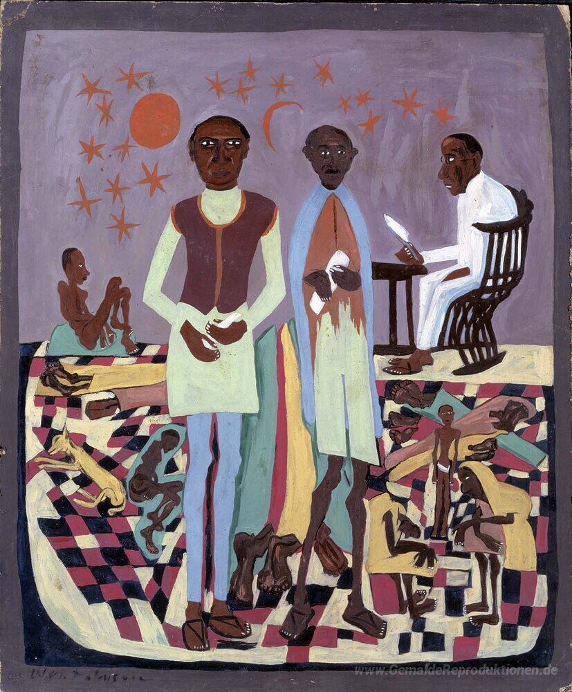Wir bieten Ihnen eine handgefertigte Reproduktion auf Leinwand des berühmten Kunstwerks 'Nehru und Gandhi' von William H. Johnson, aus dem Reproduktionsmuseum.