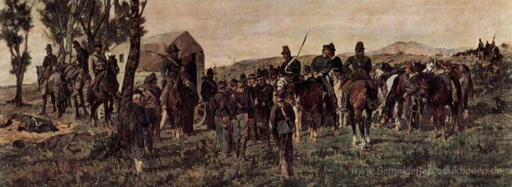 Wir bieten Ihnen eine handgefertigte Reproduktion auf Leinwand des berühmten Kunstwerks 'Prinz Amadeo Feritio bei Custoza' von Giovanni Fattori, aus dem Reproduktionsmuseum.