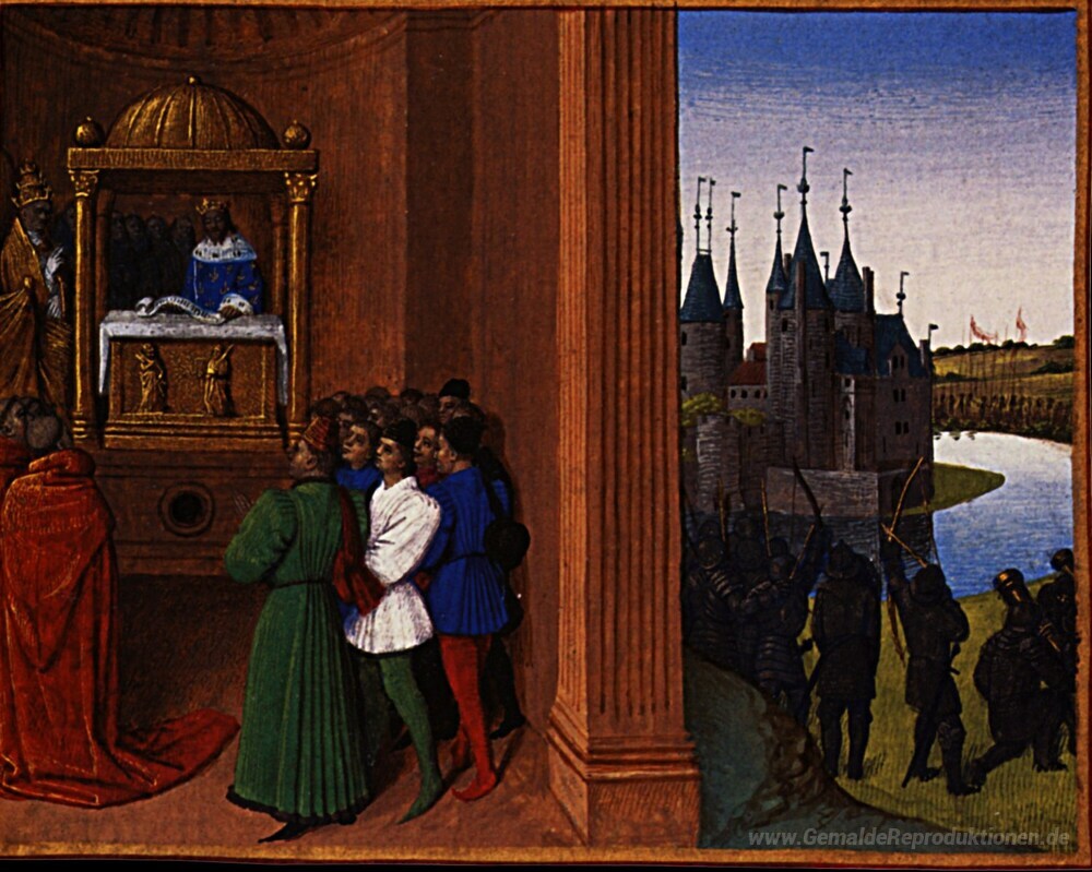 Wir bieten Ihnen eine handgefertigte Reproduktion auf Leinwand des berühmten Kunstwerks 'Robert der Fromme Dateien eine Antiphon' von Jean Fouquet, aus dem Reproduktionsmuseum.