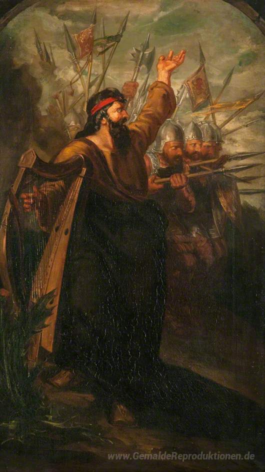 Wir bieten Ihnen eine handgefertigte Reproduktion auf Leinwand des berühmten Kunstwerks 'Scottish Krieg. Der Speer (Triptychon, links)' von David Scott, aus dem Reproduktionsmuseum.