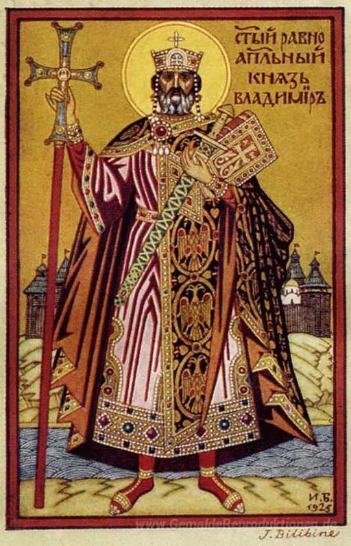 Wir bieten Ihnen eine handgefertigte Reproduktion auf Leinwand des berühmten Kunstwerks 'St. Prince Vladimir' von Ivan Bilibin, aus dem Reproduktionsmuseum.